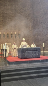 Am 21. März feiert die benediktinische Welt das Hochfest des Transitus ihres Ordensvaters Benedikt, seines Hinübergangs ins ewige Leben. In diesem Jahr fiel das Fest auf einen Samstag, daher feierten wir die Eucharistie um 11.00 Uhr. In diesem Jahr war es eine große Freude und Ehre für uns, dass unser ehemaliger Abt Dominicus Meier OSB, der von 2001 bis 2013 unser Kloster leitete und mittlerweile Bischof von Osnabrück ist, an seine alte Wirkungsstätte und Heimat zurückkehrte und mit uns das Pontifikalamt feierte. In seiner Predigt dachte er darüber nach, was Benediktinerklöster der heutigen Welt und Gesellschaft zu sagen haben. Durch das Gelübde der Stabilitas, der Verwurzelung an einem Ort, seien sie ein Gegengewicht zur modernen Mobilität. Und das „Ora et labora“, das „Bete und Arbeite“ kann einer chaotischen Welt Struktur und Ordnung geben.