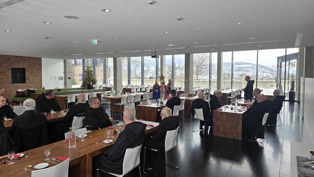 Die Exerzitien endeten mit der Bekräftigung unserer Gelübde am Epiphanietag, dem 6.1.26. Beim anschließenden Mittagessen besuchten uns die Sternsinger der Gemeinde Maria Himmelfahrt und brachten uns den Segen für das vor uns liegende Jahr. Vielen Dank den Königinnen und Königen, die in der Kälte dieser Tage von Haus zu Haus ziehen, um für Kinder in Not zu sammeln.