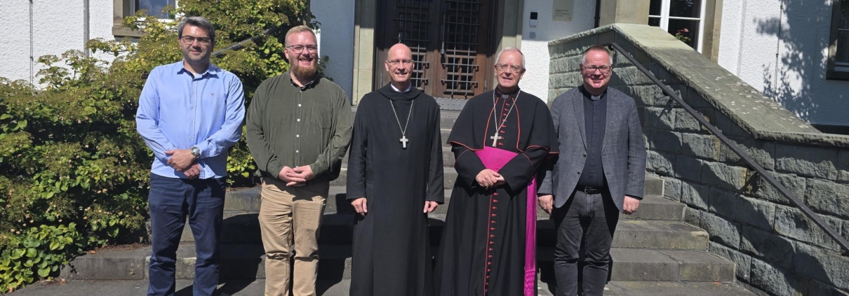 AbteiIm Rahmen der Visitation des Dekanates Hochsauerland-Mitte besuchte uns am heutigen Samstag, den 6.9., Weihbischof Matthias König vom Erzbistum Paderborn. Er ist als Bischofsvikar für die Ordensgemeinschaften wie auch für die Weltkirche uns Missionsbenediktinern verbunden. Begleitet wurde Weihbischof König von Christopher König, dem Dekanatsreferenten für Jugend und Familie, und von Pfr. Michael Schmitt, Stadtpfarrer von St. Walburga Meschede. Wir Benediktiner der Abtei Königsmünster gehören zum Erzbistum Paderborn und sind dort in vielfältige seelsorgliche und pastorale Aufgaben eingebunden. Wir wünschen Weihbischof König viele weitere gute Begegnungen während der Visitation!